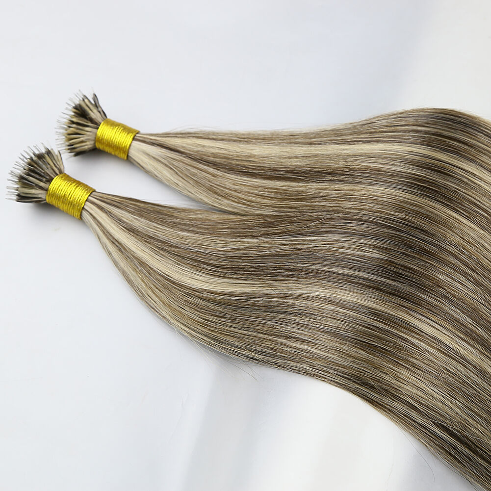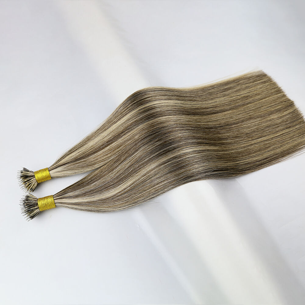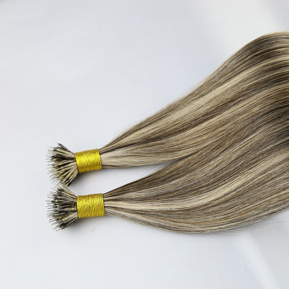 The nano tip hair extensions are also known as nano ring hair extensions, nano bead hair extensions, or nano link hair extensions. As a professional hair extension factory, we proudly present our 20-inch nano tip hair extensions. They feature a custom blend of Piano #2 and #18 shades, and are made from 100% premium human hair. They cater to B2B partners like salons, distributors, and nano ring hair extensions wholesale buyers. The 20-inch length and dual-tone blend make them a top-seller in global markets.