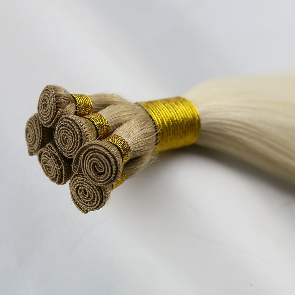 Serving as a versatile essential for both professionals and consumers, these hand tied sew in extensions allow for complete customization: modify lengths (14–30 inches), adjust colors to match any swatch, or choose curly hand-tied extensions to accommodate textured hair requirements. Additionally, we can custom hand-sewn hair extensions with your own logo, making them perfect for salons, distributors, and emerging hair brands that cater to high-end, trend-conscious audiences.