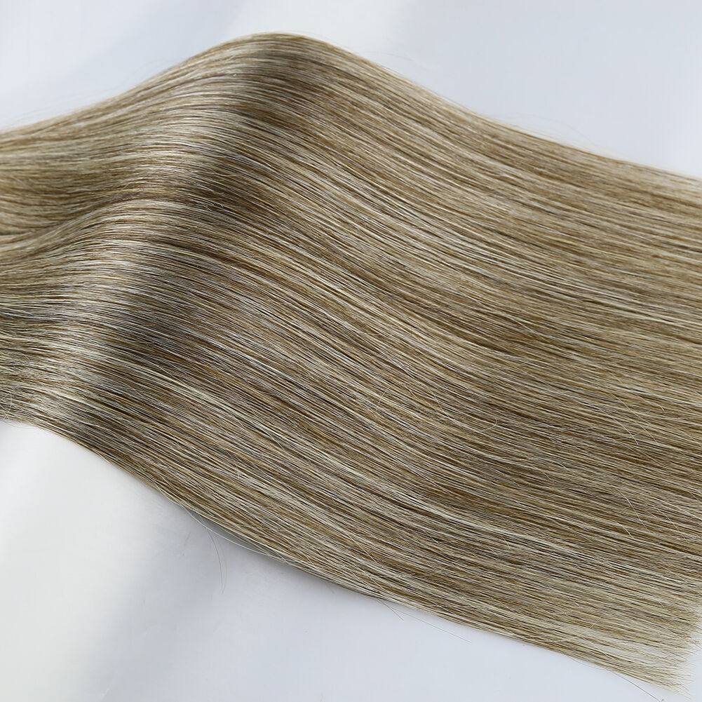 These 18-inch hand-tied weft extensions mix #4 and #613 color, which combines a rich chestnut brown (#4) with a radiant platinum blonde (#613) to create a natural, sun-kissed effect that is currently a leading trend in global beauty markets.